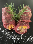 feine Hirschrouladen gefüllt mit Gemüse, Gurkerl und Speck!