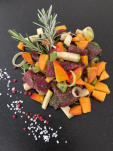 Zum Marinieren verwenden wir eine Kräutermarinade mit Rosmarin.