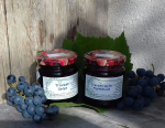 Marmelade aus unseren Blauen Trauben (75%) und Garten -Äpfeln (25%), mit Bio-Gelierzucker 2:1, passiert.