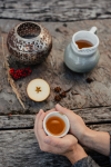 Zutaten: Hagebuttenschalen, Hibiskusblüten, Äpfel, Orangenschalen