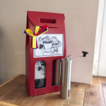 Geschenkverpackung mit Handkaffeemühle und 500g Kaffeebohnen.