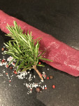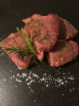 zarte Steakerl vom Hirsch an Rosmarin/Olivelöl/Meersalz